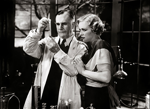 Flora Cranley (Gloria Stuart) conveys her concerns about Jack Griffin to her father Dr Cranley (Henry Travers) in The Invisible Man (Universal 1933)