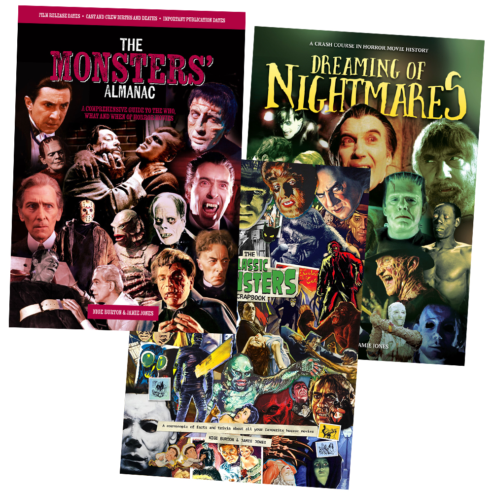 The Monsters’ Almanac, Dreaming of Nightmares and the Classic Monsters Scrapbook – a perfect combination of classic horror movie trivia guides, with reduced cover price and combined shipping!