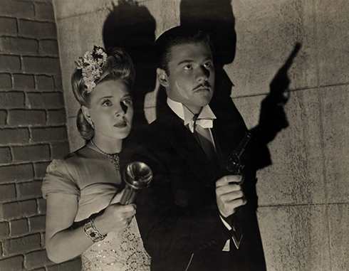 Isabel Lewis (Evelyn Ankers) and Eric Iverson (Turhan Bey) sense a stalker is about in The Mad Ghoul (Universal 1943).